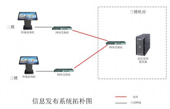 一樓安裝多媒體信息查詢、發布及引導系統。采用落地式觸摸屏,由機房中央服務器統一進行信息