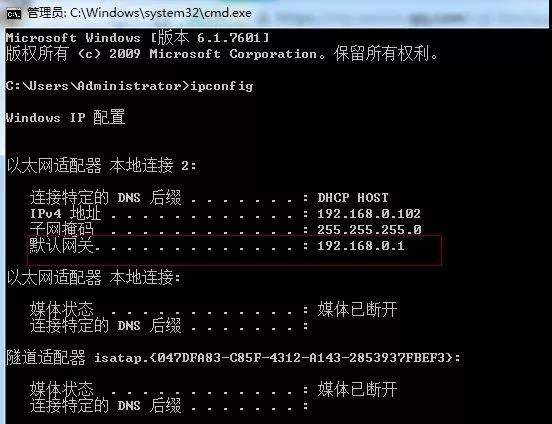 就可以獲取到本機的ip地址,子網掩碼,網關等信息。